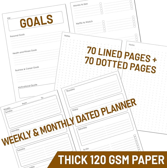 - [High-Quality 120 GSM Paper]: Includes Wanderings dated calendar insert, featuring 2026 planner — Calendar layout includes weekly and monthly planners from now to June 2027, with goal planning and yearly overview sections. Also includes extra dotted pages for notes, contacts, etc. Great as a schedule planner, appointment book or school. 200 total pages (100 sheets) of thick, smooth 120 GSM paper to prevent ink bleed-through and feathering. Compatible with Filofax A5 refills and Kikki.K inserts