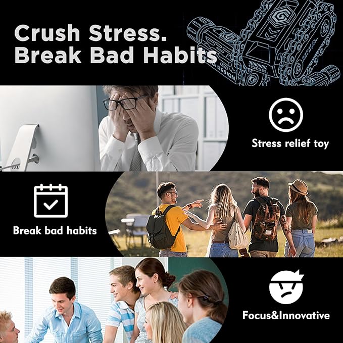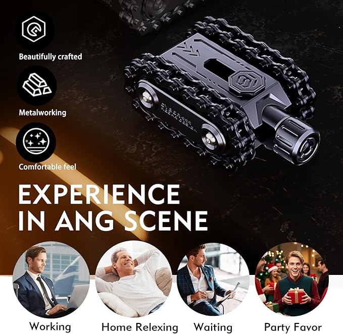 - 【COOL TANK DESIGN - PERFECT GIFT】Stand out from boring fidgets! Pain stim features a unique, industrial-style mini tank aesthetic with realistic chain treads. This isn't just a toy, it's a stylish accessory and conversation starter. The 1 Gift Choice for Men, Dads, Teens, Gamers, and Colleagues on Birthdays, Christmas, Father's Day, Stocking Stuffers, or Just Because!