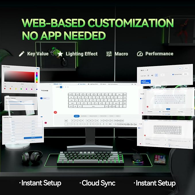 - 【Customizable RGB Lighting】Features 20 lighting modes and customizable effects. Control with shortcuts: toggle light (Fn+Backspace), change colors (Fn+Shift), switch modes (Fn+), adjust speed (Fn+←/→) and brightness (Fn+↑/↓). Further personalize via software.