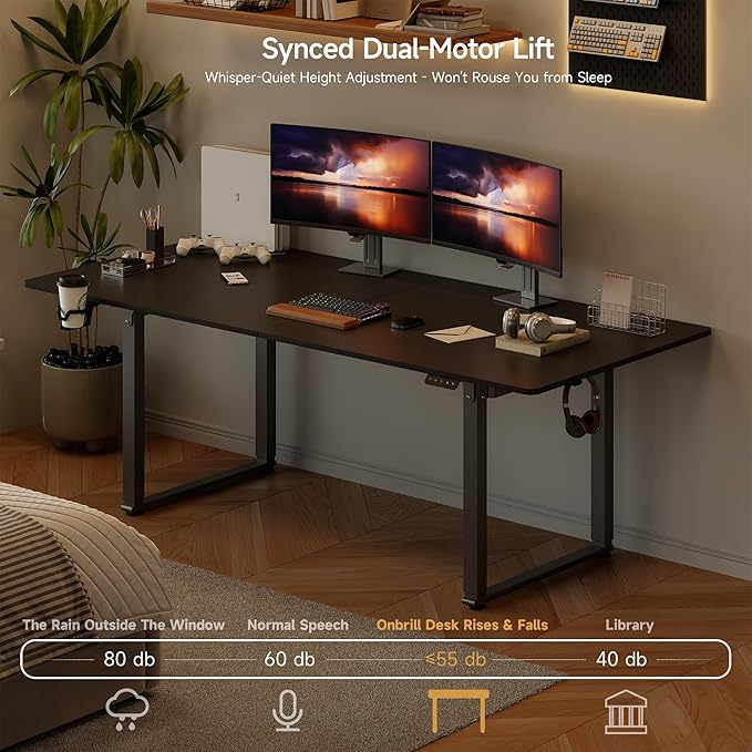 - Unmatched Stability & Smooth Operation: Equipped with dual-motor technology, this height-adjustable desk delivers effortless and quiet adjustments (approx. 55 dB noise level). The intuitive memory controller allows you to save your preferred standing or sitting heights for quick recall, enhancing convenience during work or study sessions.