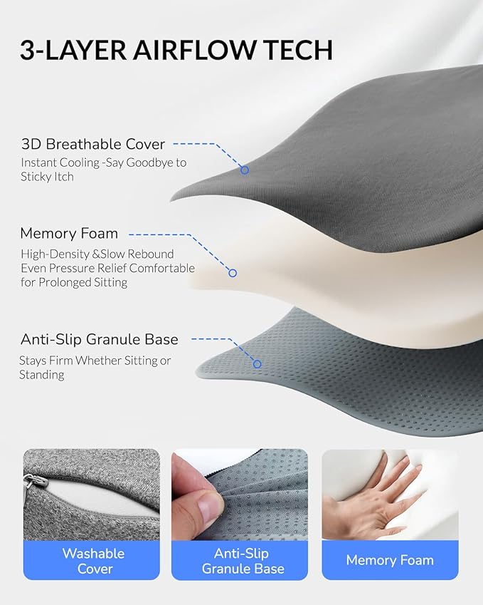 - ✔【Keep Hips Refreshing】: The Artelse cushion is made of high-quality, durable and breathable fabric. Its durability is increased by 10%, heat dissipation is 20% faster, and it has excellent breathability. It can quickly disperse the heat from your buttocks, allowing you to bid farewell to the stuffiness and keep the seat dry and cool for a long time, enhancing the comfort of sitting.