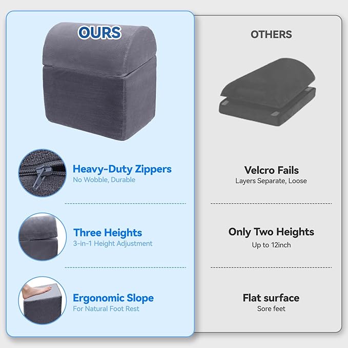 - [STABLE & COMFORTABLE] Unlike footrests with Velcro connections, ours features heavy-duty dual zippers to keep layers securely connected, while a double-layer non-slip bottom prevents sliding on any surface, making it a reliable foot rest for under desk in offices or home setups.