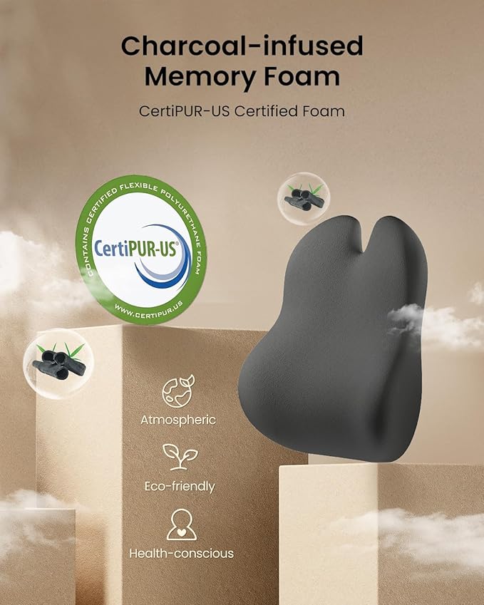 - Breathable Memory Foam for All-Day Comfort: Infused with bamboo charcoal, the dense memory foam adapts to your waist contour, offering dynamic pressure relief without causing stuffiness—perfect for all seasons