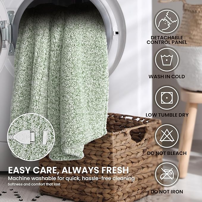 Electric Heated Blanket Full Size 72x84 inches, Fast Heating w/ 10 Heat Settings & 2/4/8/10H Auto Timer, Double-Sided Sherpa, Ultra Soft & Cozy for Couch, Bed, Office, Machine Washable, Light Sage