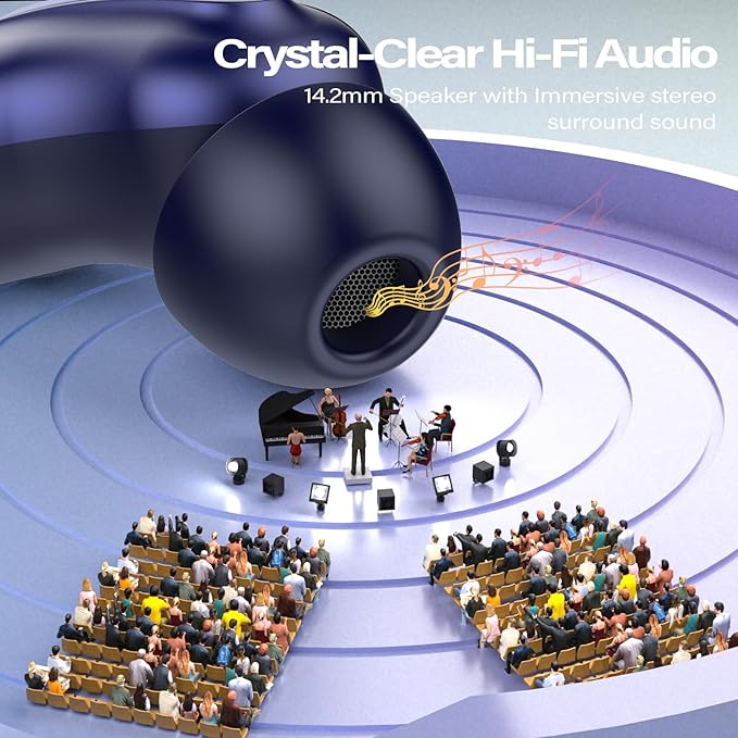 - Bluetooth 5.4 with Instant Auto-Pairing:Featuring the latest Bluetooth 5.4 chipset, the Bluetooth D20 Wireless headphones offers ultra-stable, low-latency connections. Enjoy instant one-step pairing—just open the case and the earbuds automatically connect to your last device. With strong anti-interference capabilities and a wireless range of up to 15 meters, you can move freely around your home or relax in bed without losing audio quality.