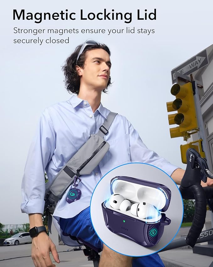 ESR for AirPods Pro 3 Case (2025), Compatible with Airpods Pro 3rd Generation Case (USB-C Cable), Magnetic Lid, MagSafe Ready, Powerful Drop Protection, Cyber Series, Purple
