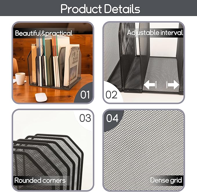 - 【Adjustable Desktop File Manager】: With multiple sections and multiple adjustable independent dividers, the dividers are attached to a flat base by sliding the bottom, and you can adjust the width between the grid dividers to make them wider or narrower depending on what you want to place in each section. The movable frame gives you the freedom to resize to suit different needs, and it can fit store files, books, laptops, and more, putting everything at your fingertips for ultimate convenience.