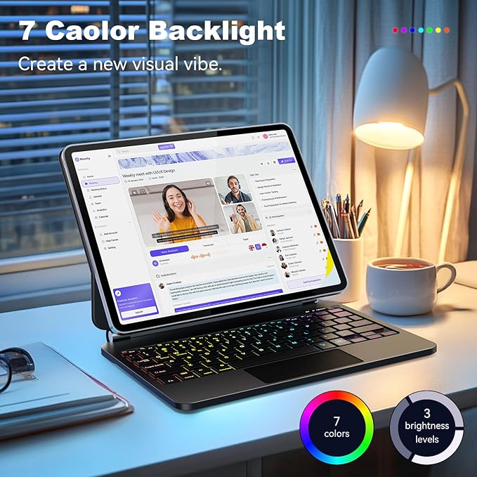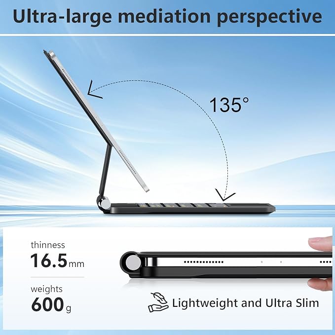 - Backlit Keyboard for iPad Air 13 inch and iPad Pro 12.9: From dawn to dusk, adapt effortlessly! Adjusting 7 backlight and 3 levels of brightness ensures clear visuals in every setting, enhancing your immersive experience. This feature not only adds a touch of style but also makes typing in low-light conditions more comfortable.