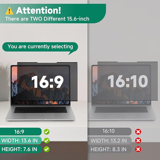 - Wide Compatibility - IRUYO FL privacy screen protector is espeaiclly designed for laptop 15.6 inch(16:9), 13.6''W and 7.6'H viewable area, please measure your screen first before purchase. Compatible with Lenovo, HP, Dell, Acer, Asus, Samsung, and other laptop brands.