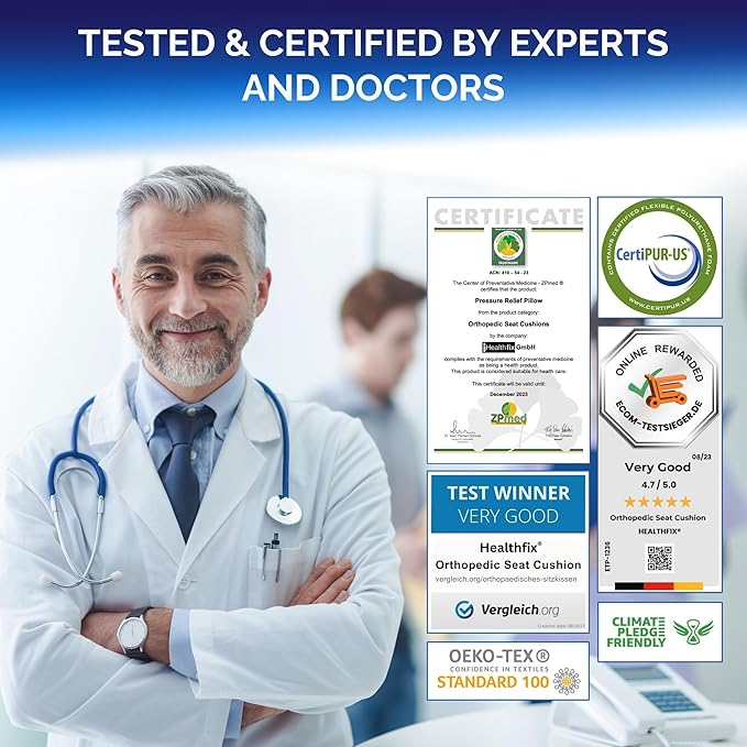 - ORTHOPEDIC QUALITY: Developed by our experts in Germany, this cushion is orthopedic doctor recommended for its effective pressure relief. Made with durable, high-quality materials for long-term use. Risk-free purchase – we include a Lifetime Replacement Guarantee, so if you ever have an issue, we will make it right with a free replacement or full refund.