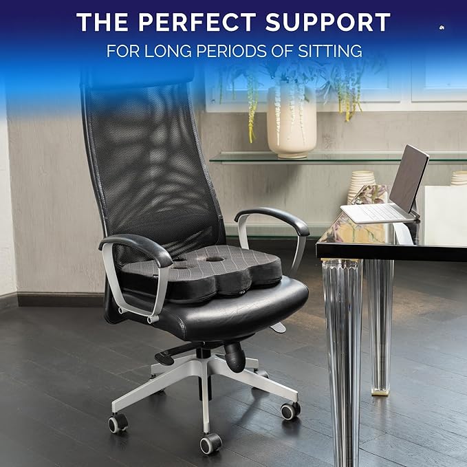 - ALL-DAY TAILBONE & SCIATICA RELIEF: Ergonomically designed U-shaped cutout reduces pressure on your coccyx (tailbone) and spine, relieving pain from sitting, sciatica, and piriformis syndrome. Enjoy instant comfort and improved posture even during long work hours.