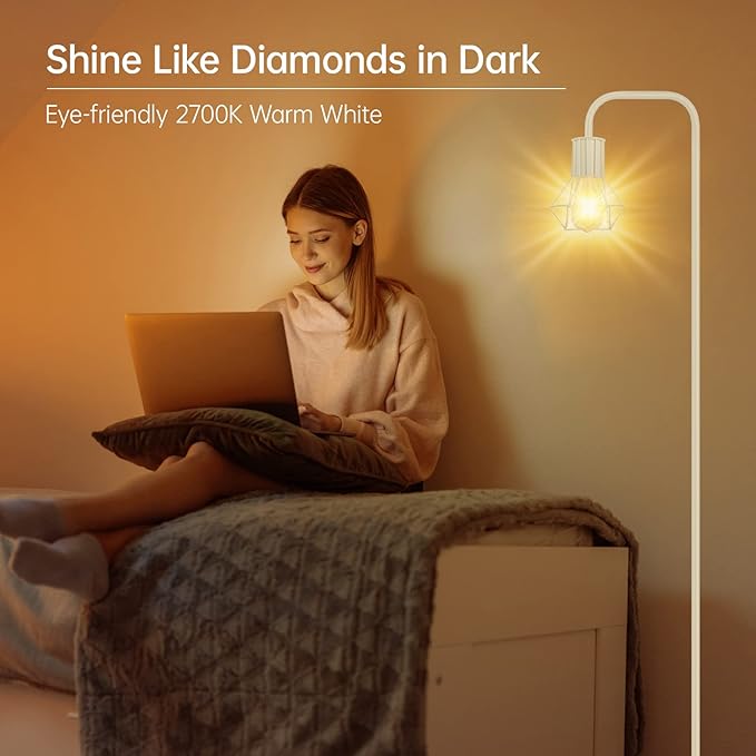 - You Decide the Style; Are you looking for a white floor lamp with a unique design and also a 100% match with your home style; BoostArea 6W diamond industrial floor lamp is your ideal answer; This diamond shaped white standing lamp comes with a built-in E26 Standard Base Socket (6w LED Bulb Included), which gives you much more space to design it according to your home style and your own taste; When using different shapes and colors of bulbs, the lamp gives various looks; Tips: Only for E26 bulbs