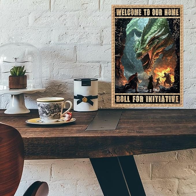 1000 Piece Difficult Wooden Jigsaw Puzzle Welcome to Your Home Roll for Initiative for Adults Kids Educational Family Activity Stress Relieving Quiet Play 29.5x19.7 Inch