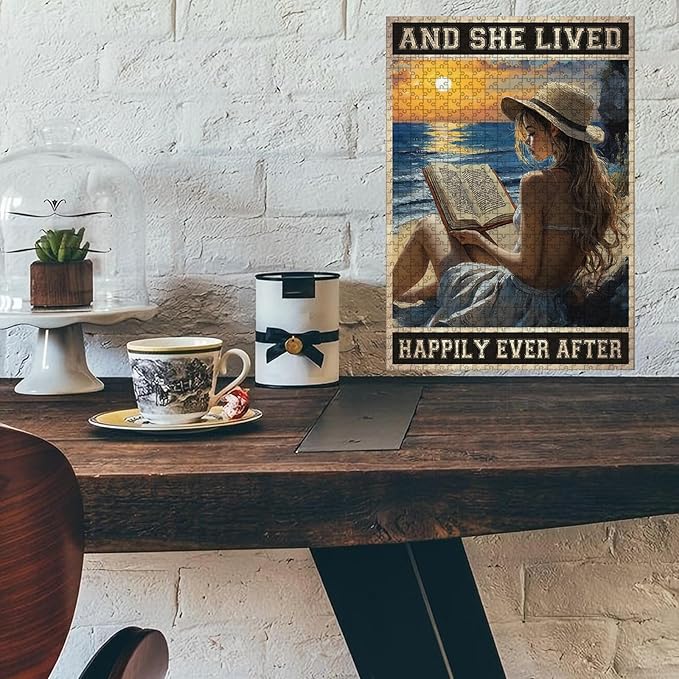 1000 Piece Wooden Jigsaw Puzzle and She Lived Happily Ever After Girl Reading Book Adults & Kids Time Killing Challenge Stress Relief Quiet Play for Rainy Days Long Car Rides 29.5x19.7 Inch