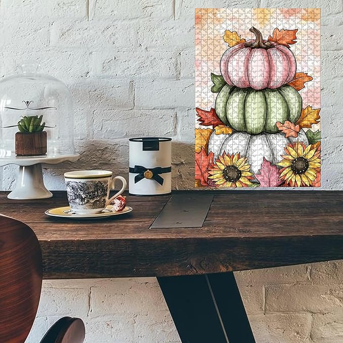 1000 Piece Wooden Puzzle Autumn Pumpkin Adults & Kids Challenging Game to Relieve Stress Improve Focus & Enjoy 29.5x19.7 Inch