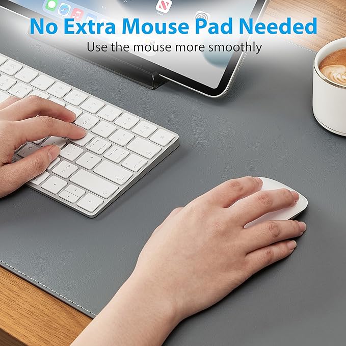 - PROTECT YOUR DESK: Mouse pad made of durable PU leather material, which protects your desk from scratches, stains, spills, heat and scuffs. It also gives your office a modern and professional atmosphere when you put it on your desktop. Its smooth surface will make you enjoy writing, typing and browsing. It is perfect for both office and home