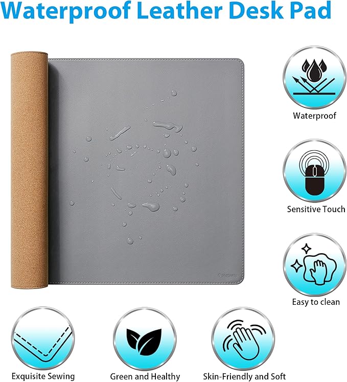 - WATERPROOF AND EASY TO CLEAN: Made of water-resistant and durable PU leather, this desk pad protects your desktop from spilled water, drinks, ink and the other liquid. Easy to clean, just wipe with a wet cloth or paper