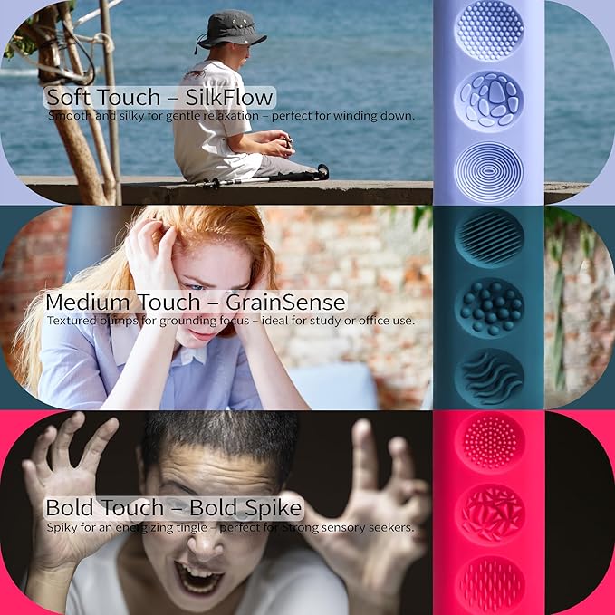 - Feel the Difference Each surface offers a distinct tactile sensation—from ridges to dips to dots. Designed for quiet fidgeting at work, school, or home.
