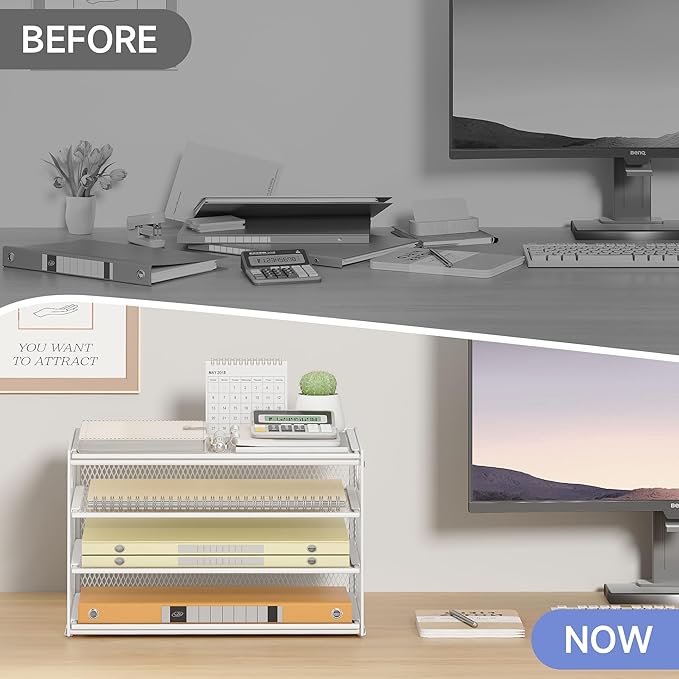 - Paper Organizer Function and Usage: The mesh desktop file organizer can hold various items including paper, folders, books, bills, notebooks, etc. The open design enables quick identification and access to contents, helping to declutter and organize the desk