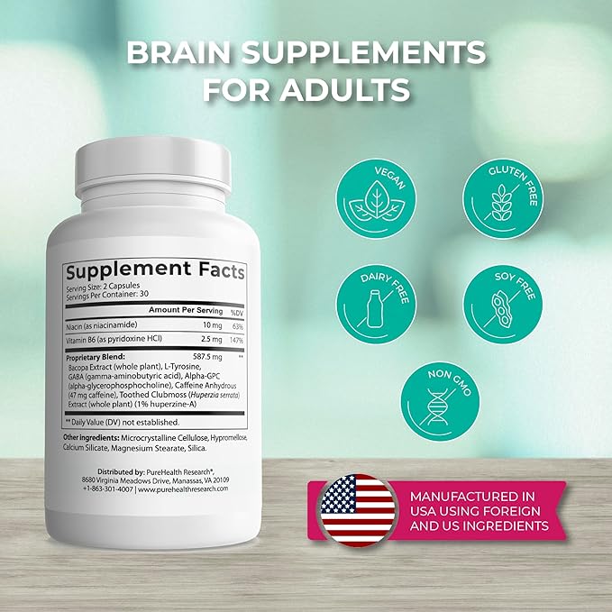 - Special Ingredients : Alpha GPC, Bacopa Monnieri, L-Tyrosine, Niacin, Vitamin B6
