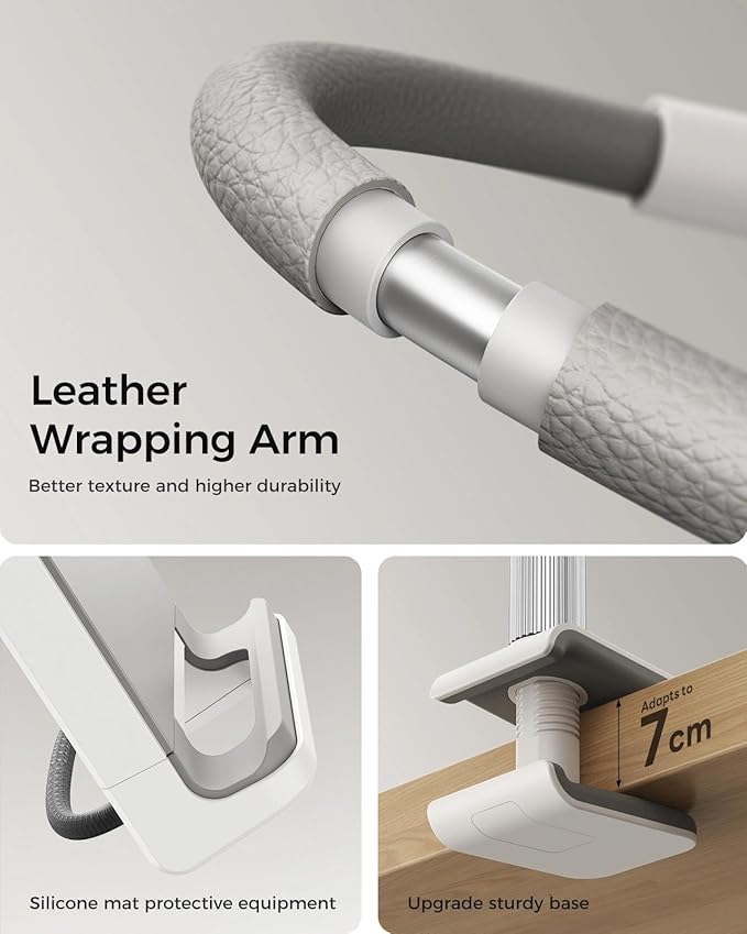 - 【Using Tips!】This type of kindle stand is perfect for reading, watching or recording. But when you tap your device frequently, it will produce unavoidable shaking due to its unique physical characteristics. In this case, try to loop the gooseneck arm that closes to the holder into "S" or "Z" shape to maintain more stability. It's suggested to use one hand to hold tablet while touching the screen. Please hold the junction between the white and black arm to adjust angle to prevent it from falling