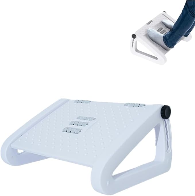 Under Desk Foot Rest for Office, Adjustable Ergonomic Accessories Portable Small Foot Stool Massager, Computer Foot Hammock Rest for High Gaming Chair Tall Footrest for Couch(White)