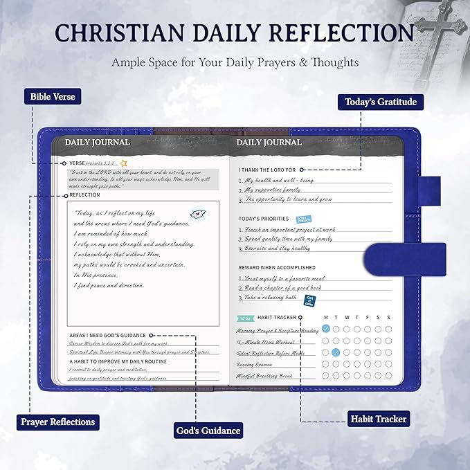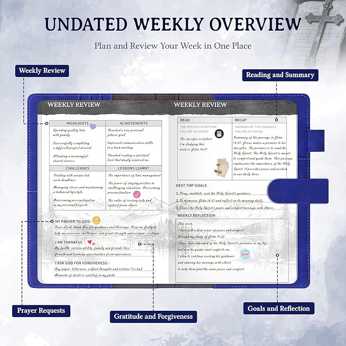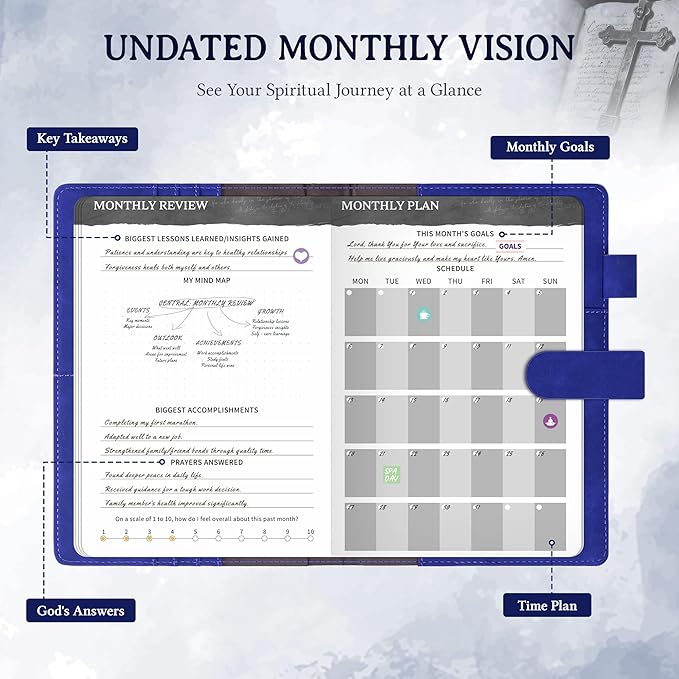 - 【Guided Spiritual Journal】Features structured daily, weekly, and monthly sections for devotionals, gratitude, goal-setting, blessings/answered prayers, scripture reflection, and prayer tracking. The ample writing space helps you dive deeper into your faith, while the habit tracking feature helps keep you accountable and organized.