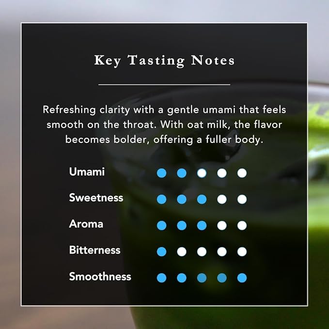 - Smooth and Refreshing Flavor: The first harvest and shading enhance chlorophyll and L-theanine levels, creating a vibrant green color and a smooth umami taste with balanced sweetness. This blend is low in bitterness and carries a clean, refreshing finish.