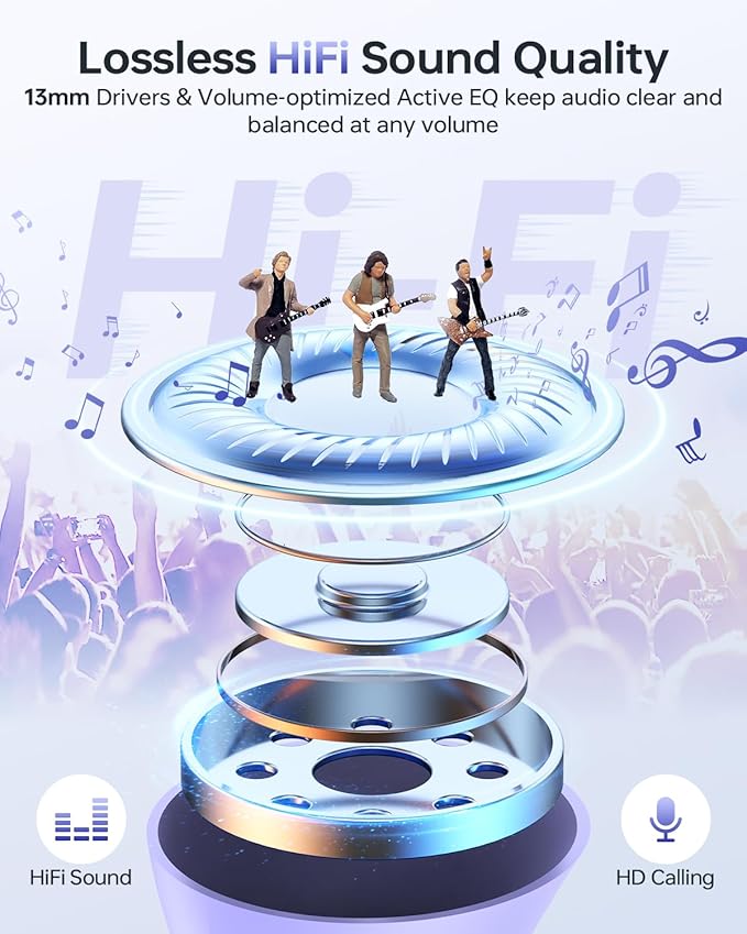 - Ultimate Hi-Fi Sound Wireless Earphone - Hear all the details: The 13.2mm large dynamic driver allows for a larger vibration area and deeper beats, while the rigid and hard titanium-plated diaphragm offers purer treble performance. In addition, three wide bands and sensitive transient response give you more details, a variety of acoustic parameters have been fine-tuned to achieve the optimum sound quality.