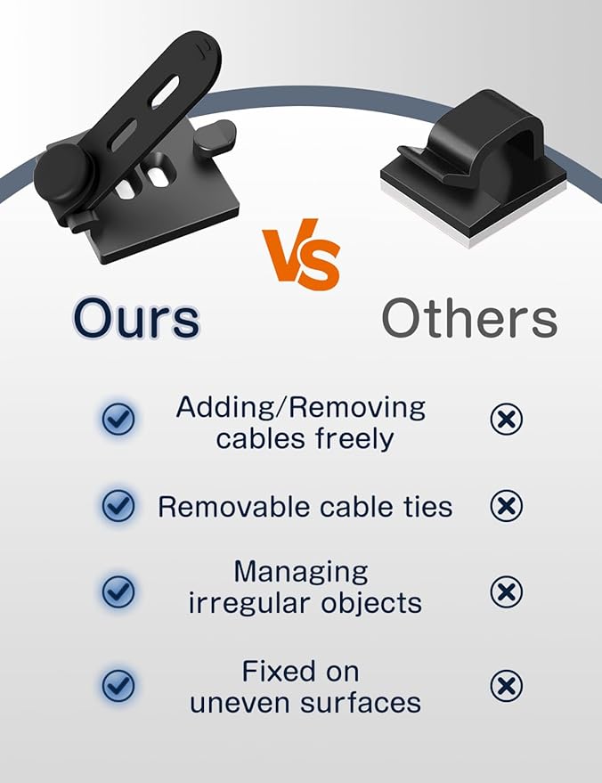- 【Removable Cable Clips】These cable tidy clips feature a removable design, allowing them to be detached individually as needed during use. If the silicone deteriorates due to prolonged use, the cable tidy can be replaced to extend its service life, making it more economical and practical