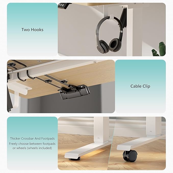 48 x 24 inch Electric Standing Desk Adjustable Height with 4 Wheels, 4 Memory Height Settings, 2 Headphone Hook, Home Office Desk, Splice Board Oak