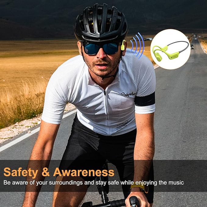 - Open-Ear Comfort: Crafted from ultra-soft silicone, these bone conduction Bluetooth headphones offer a comfortable fit for extended wear. Featuring advanced bone conduction technology, they deliver high-quality sound while keeping your ears open to ambient noise, making them ideal for swimming, running, cycling, and other outdoor activities. Not only are they safer than in-ear earbuds and over-ear headphones, but they also help prevent hearing damage