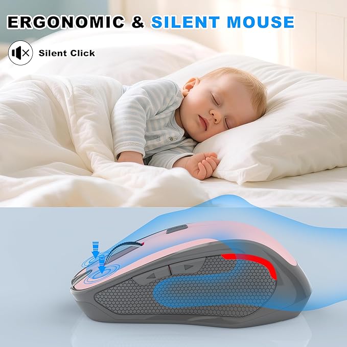 - 【 Ergonomic, Quiet, and Travel-Friendly】Small, Portable Ergonomic mouse with a natural curved shape and skin-friendly surface reduces hand and wrist strain. Mute-click feature ensures a quiet, distraction-free experience. Comfortable for extended office work, gaming, or travel