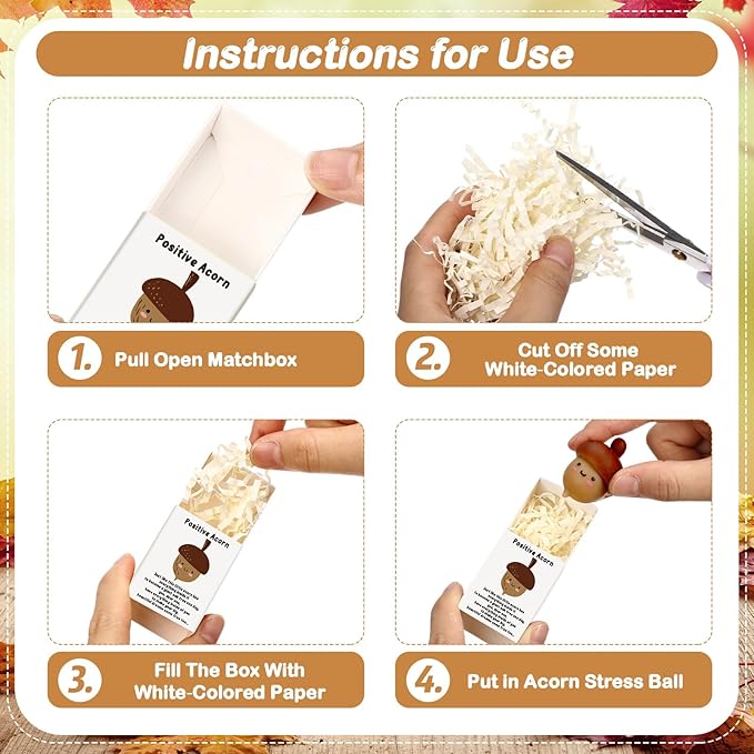- Appreciation Gift Set: this package contains 24 acorn stress balls and 24 support gift boxes with raffia, suitable for gift giving, which is both cute and practical, making the recipient feel valued and appreciated
