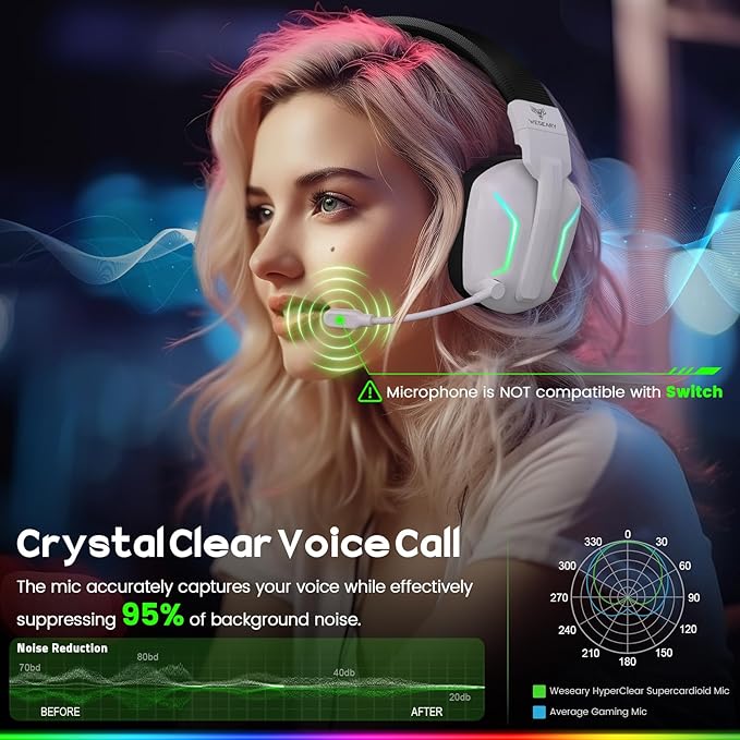 - đ ăVersatile Compatibilityă WESEARY gaming wireless headphones for Game Boy Accessories, PC, Switch, Mac, and laptops are your all-in-one solution, supporting 2.4GHz dongle mode, surpassing other gaming headsets in performance. Easily switch to Bluetooth 5.4 mode for mobiles, tablets, iPads, and smart devices. âNote 1: Both modes are NOT compatible with any Xbox.â ď¸ Note 2: The microphone is NOT compatible with Switch.đŤNote 3: Bluetooth mode is NOT compatible with PS4/PS5.