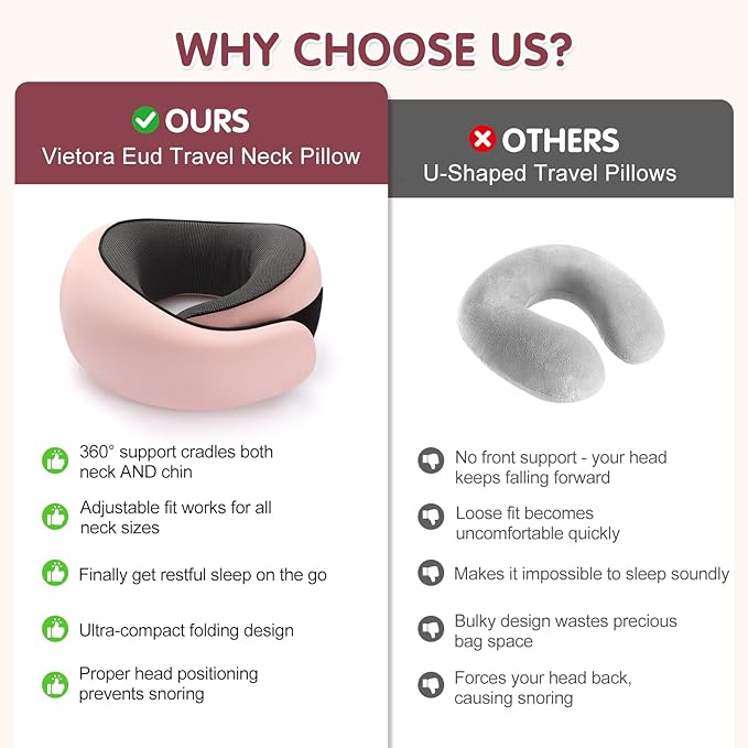 - 【Unbeatable Neck Support & Deep Sleep】 Engineered with premium memory foam, this travel neck pillow cradles your head and neck in perfect alignment, eliminating stiffness and pain during flights, car rides, or office naps. The ergonomic U-shape prevents head drooping, while the built-in chin support keeps your mouth closed for snore-free rest.
