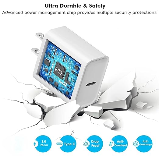 - ▶iPhone Charger Certification◀The iPhone fast cord ensures efficiency file transfer when iPhone devices are connected and the authority certified fast PD plug improves your phone is charging efficiency by 50%.The Official guarantees for durability and reduce the problems of overheating,poor contact when the iPhone/iPad/iPod/Airpods is charging.