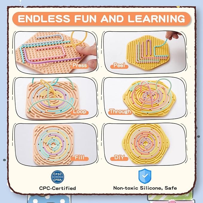 - 【Silent & Discreet Fidgeting】Unlike noisy fidget toys, this Jet Lag activity board with 20 Random-Color Strings is designed for quiet use, making it perfect for environments like classrooms, offices, or travel. The tactile features allow users to engage in sensory play without causing disruptions, ensuring a peaceful experience. Its sleek, silent design allows you to fidget without disturbing others—ideal for any public or private setting