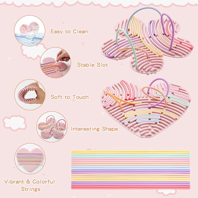 2 Pack Sensory Activity Board with 20 Random-Color Strings, Double-Sided Silicone Sensory Fidget Toy for Kids and Adults with Autism, ADHD, Silent, Stress Relief, Calming, Focus, Gift for Girls Boys