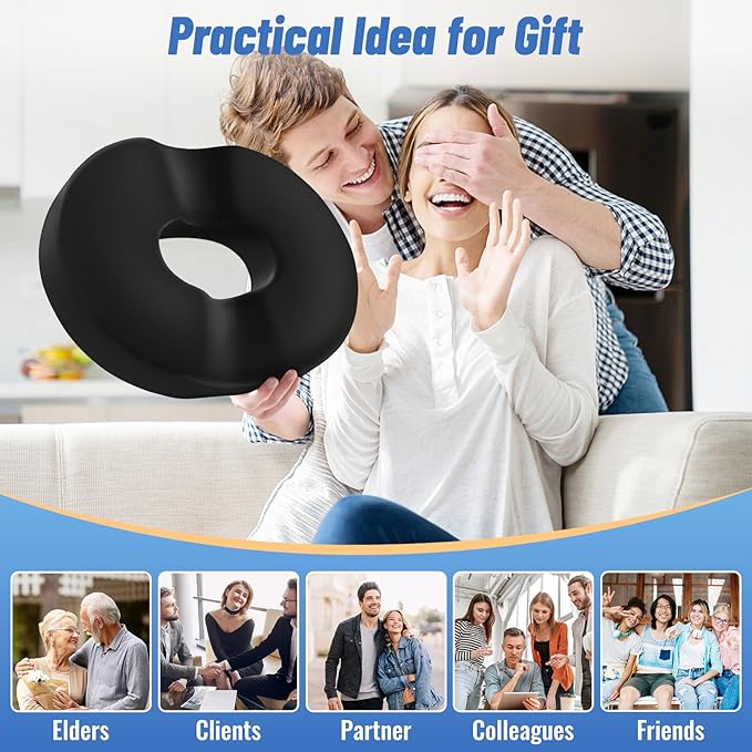 - [Relieve Sedentary Discomfort] Whether you have a desk job or spend long hours sitting, sedentary discomfort is a real issue. Prolonged sitting can lead to a variety of health problems, including lower back pain, hip pressure, and even sciatica. CloudBliss donut pillow is your answer to finding relief from these issues. Its innovative design distributes weight evenly, reducing pressure on the spine and promoting proper posture