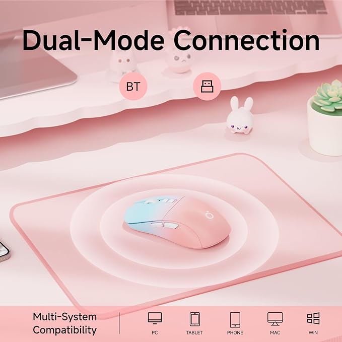 EWEADN G309 Wireless Computer Mouse,2.4G&Bluetooth Ergonomic Cordless Mice with 4000 DPI,5 Adjustment Levels,Cute and Portable Mouse for Laptops, PC and More,7 Buttons Office USB Mice-Blue&Pink