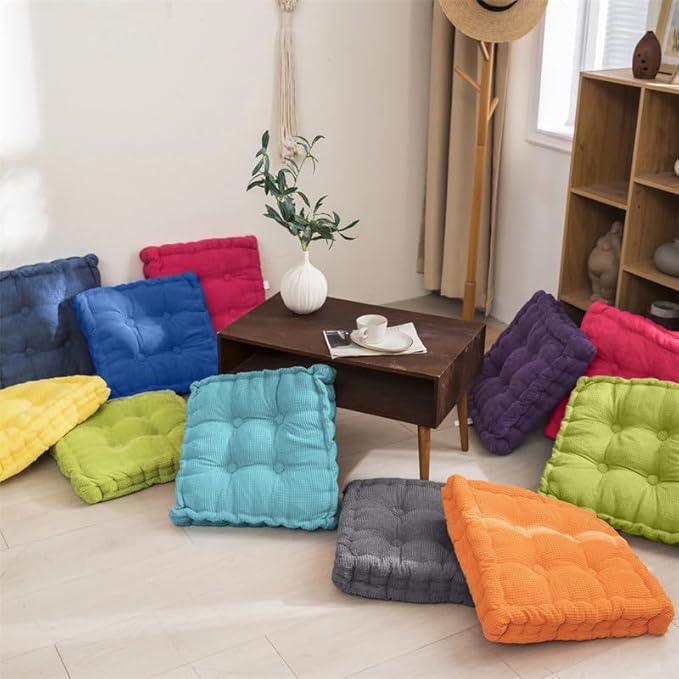 - High Quality Material:Our tatami floor pillow is made of corduroy corn kernels, and filled with pearl cotton,the thick chair cushion is soft and skin friendly, resilient, and odorless, just like the feeling of touching the clouds