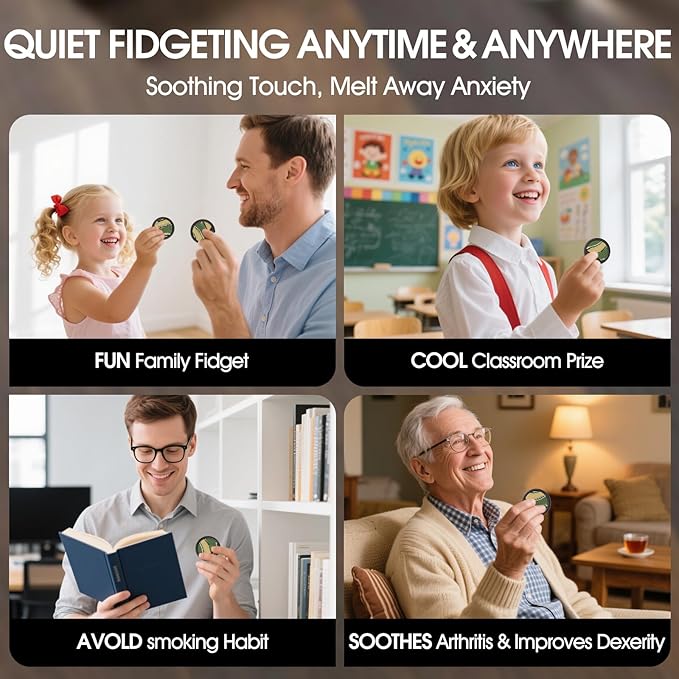 - Portable & Convenient: Small and compact, the fidgets for adults and kids fits easily in your pocket or wallet; Whether you're in the office, at home, or on the go, these quiet fidget toys allows you you to enjoy quiet, de-stressing fun anytime, anywhere