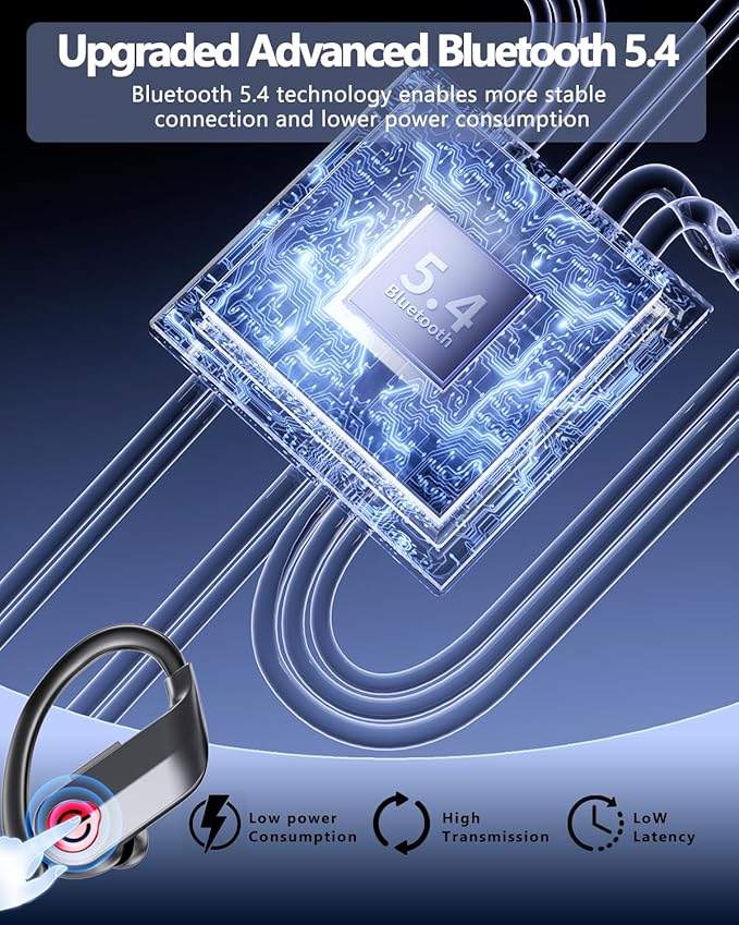 - Bluetooth Earbuds over ear 120h Playtime & Led Power Display: Outlast competitors with 120-hour wireless over the ear earbuds. The digital-display charging case shows exact battery levels—twice the enduranceof ordinary over ear buds. Never miss a beat during marathons or workdays.