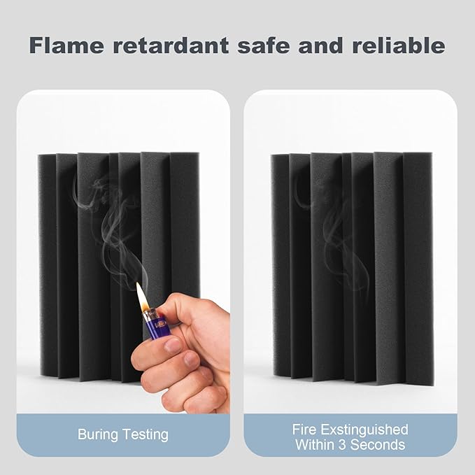 - High-Density Acoustic Foam: Made from high-density acoustic foam for durable sound absorption. Please refer to the product label or packaging for any fire-safety information or certifications.