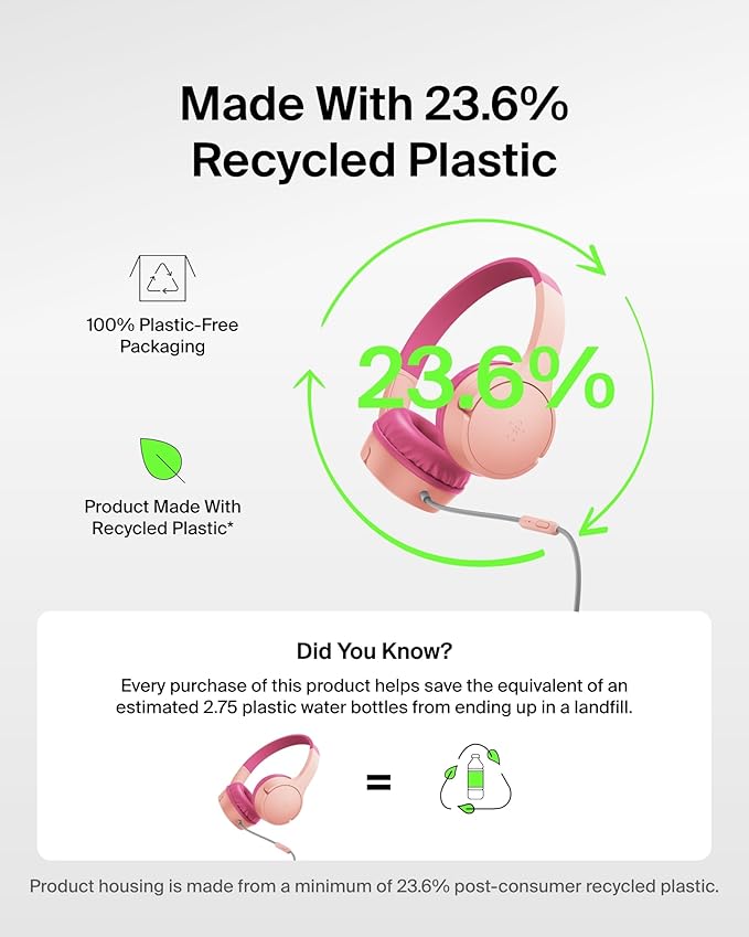 - BUILT-IN MICROPHONE & SAFE SOUND: The wire has a built-in microphone for video and phone calls. And with Belkin Signature Sound with audio tuned specifically for kids, this headphone set has an 85dB volume limiter to protect your little one's ears.