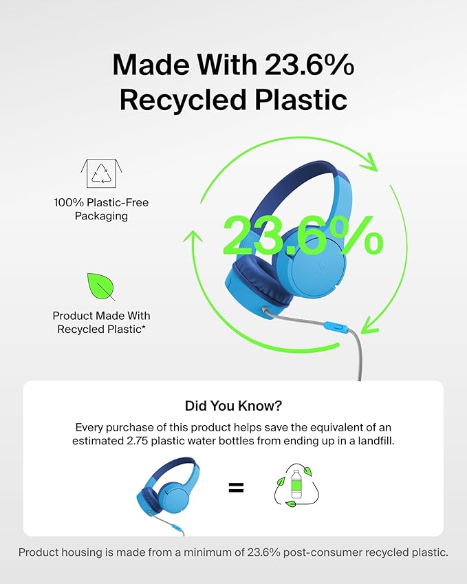 - BUILT-IN MICROPHONE & SAFE SOUND: The wire has a built-in microphone for video and phone calls. And with Belkin Signature Sound with audio tuned specifically for kids, this headphone set has an 85dB volume limiter to protect your little one's ears.