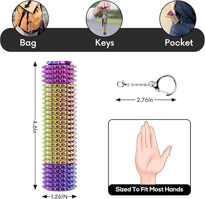 - Tress & Anxiety Relief:The spiky texture delivers deep pressure touch, while the smooth rotation offers calming sensory input. A simple spin helps release tension and soothe anxious minds—perfect for adults under stress or teens needing focus support.