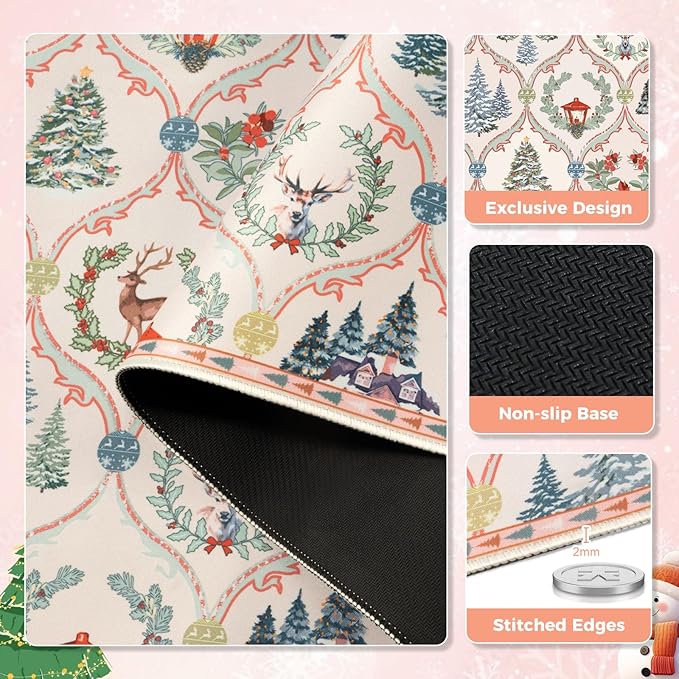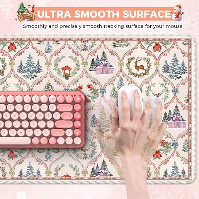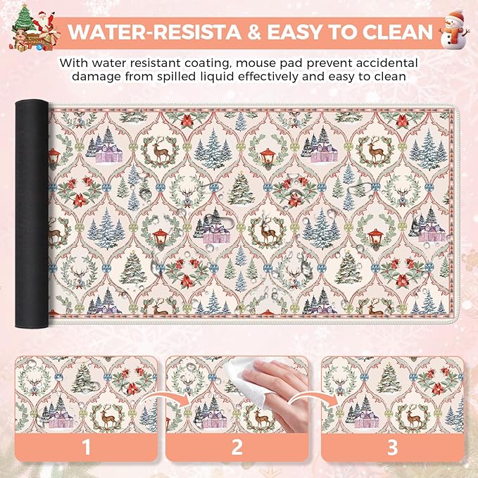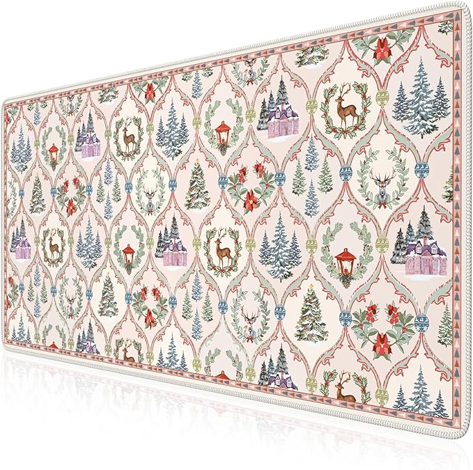 iCasso Christmas Desk Mat, Beige Mouse Pad, Desk Protector Mat, Extra Large Office Matt for Desktop,Anti-Slip XXL Big Mousepad with Stitched Edges for Computer Keyboard