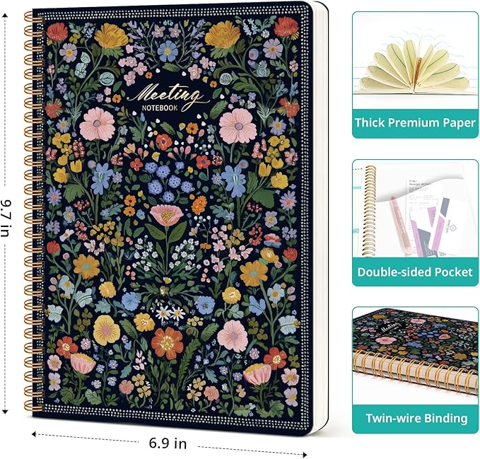 Meeting Notebook for Work Organization, Aesthetic Meeting Minutes Notebook for Work, Event Project Agenda Planner Organizer, Perfect for Office School Business Supplies, 6.9" X 9.7" - Garden of Whimsy